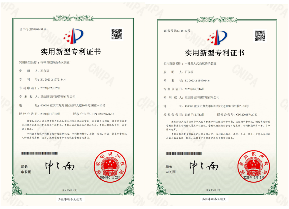 白蟻監(jiān)測控制裝置防治白蟻的原理是將白蟻喜食且對白蟻具有極強(qiáng)引誘力的木塊固定在監(jiān)測控制裝置內(nèi),然后將監(jiān)測控制裝置按一定的要求安裝在需保護(hù)的房屋、樹木周圍或堤壩內(nèi)、外坡及坡頂土壤中,外出覓食的工蟻到達(dá)監(jiān)測控制裝置周圍一定距離處的土壤中后,由于受裝置內(nèi)木塊釋放在土壤中的引誘物質(zhì)的強(qiáng)烈吸引,迅速將蟻路修筑至監(jiān)測控制裝置,并紛紛進(jìn)入裝置內(nèi)取食。